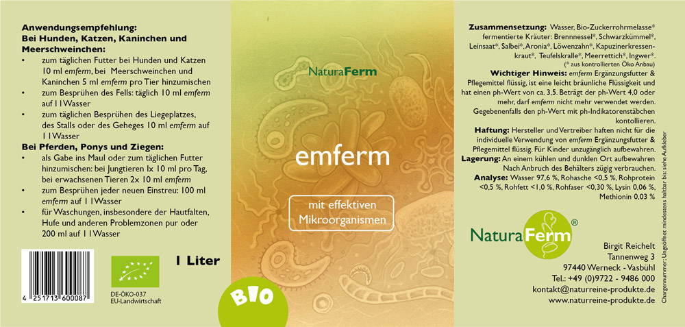 - Bio EMferm ist kein Arzneimittel und ersetzt keine tierärztliche Behandlung.