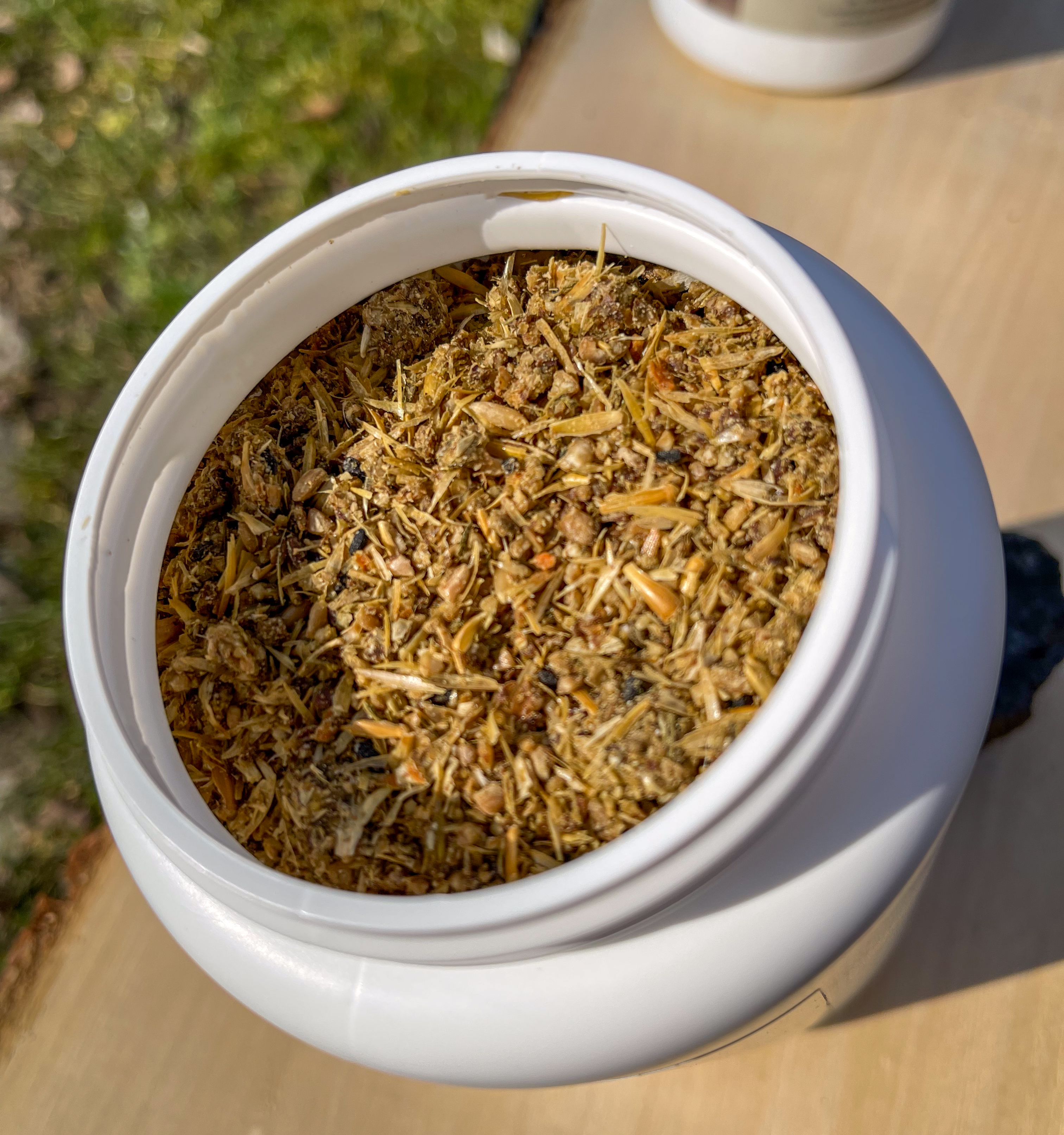 - Enthält Kräuter & Zutaten, die du in kaum einem anderen Ergänzungsfutter findest. Viele verzichten auf bestimmte Zutaten, weil sie teuer und schwer verfügbar sind. Wir nicht. Wir glauben, dass dein Hund hochwertige, natürliche Inhaltsstoffe verdient – selbst wenn sie mehr kosten.