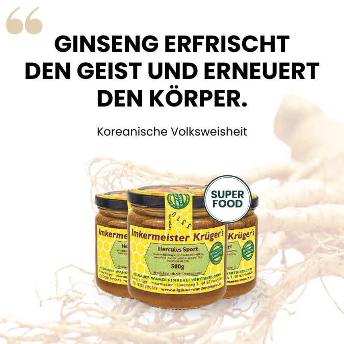 - Koreanischer Ginseng: Dieses Jahrtausende alte Heilkraut ist ein wahrer Alleskönner. Es steigert deine Konzentration, verbessert deine Ausdauer und unterstützt dein Wohlbefinden.